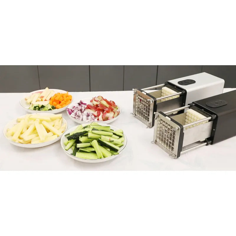 A high-performance kitchen appliance designed to quickly and efficiently cut French fries, vegetables, and other produce into uniform shapes. Its electric operation saves time and effort, making it ideal for home cooks and small-scale food preparation.